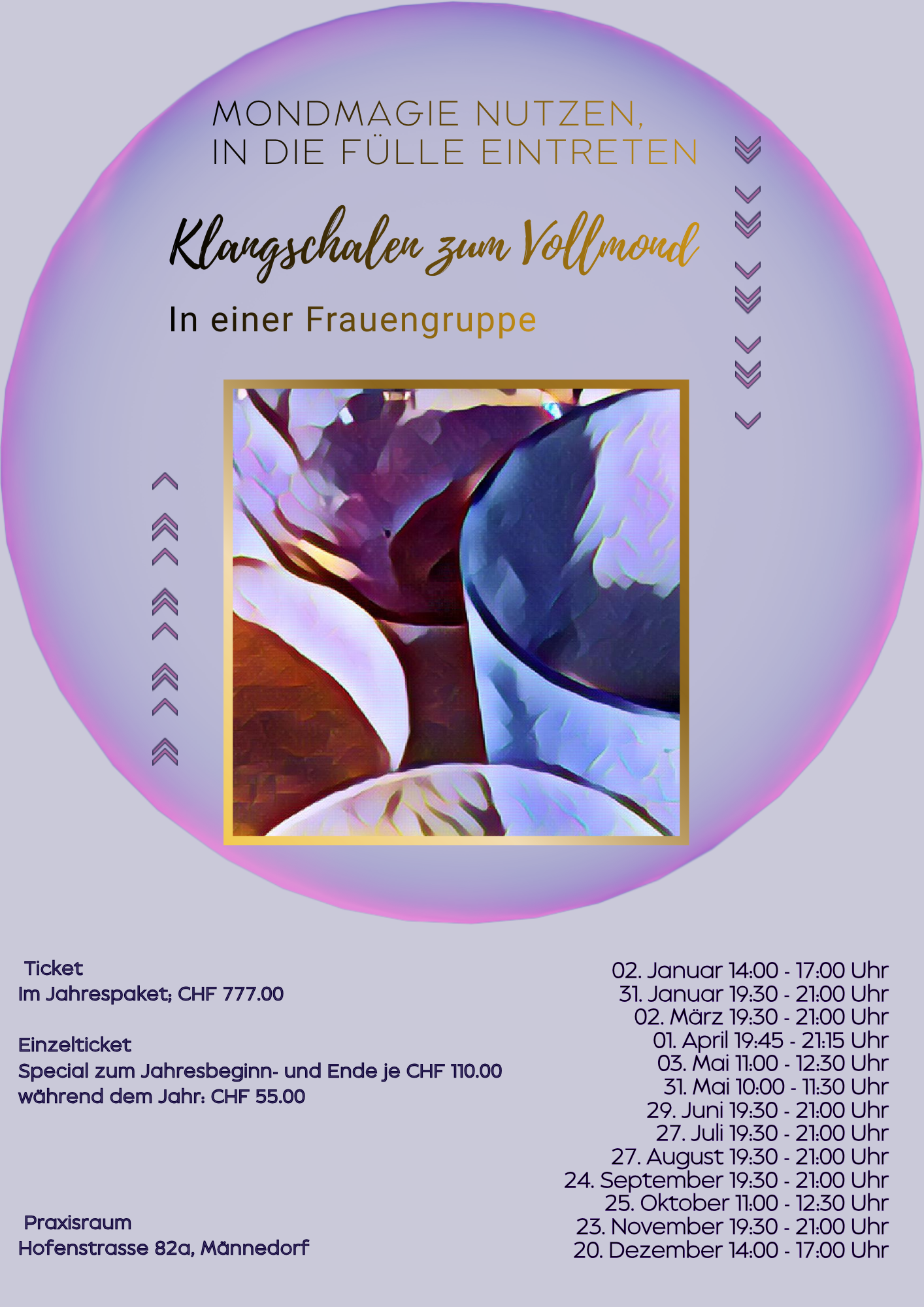 Lass dich von den Kristall-Kangschalen berühren und tauche ein in die Welt des inneren Friedens und bereite den neuen Zyklus bewusst vor.